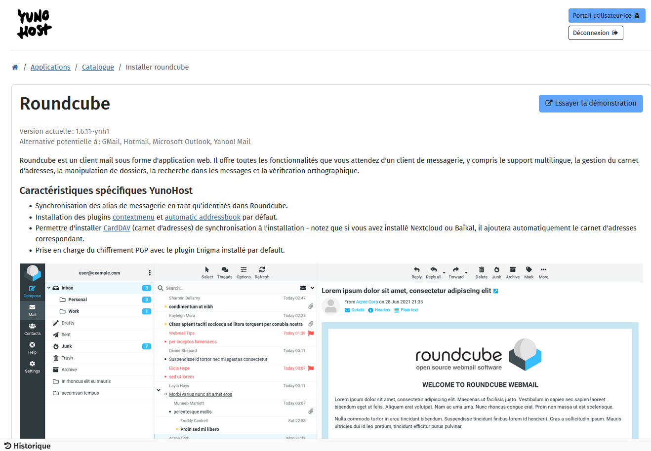 What type of hardware are you using: Old laptop or computer What YunoHost version are you running: 12.0.17 What app is this about: Roundcube
