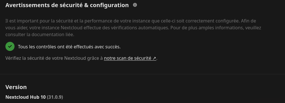 Et voilà une mise à jour Nextcloud réussi, même si parfois, je suis obligé de corriger quelques erreurs avec config.php, mais dans l’ensemble, je n’ai pas de soucis.