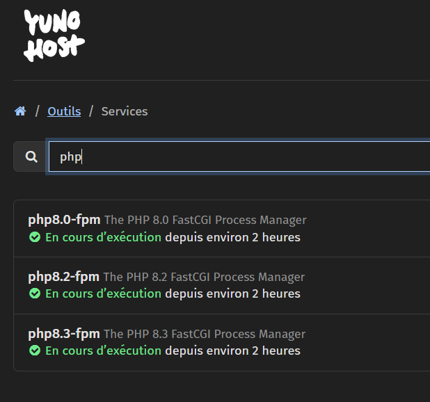 ah bah voila un début de réponse probablement …. il y a des service pour php8.0, php8.2, php8.3 mais pas 8.4… en revanche je ne sais pas trop comment m’en sortir.