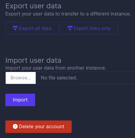 I played around exporting the link json or user json and got an error when trying to import the backups.