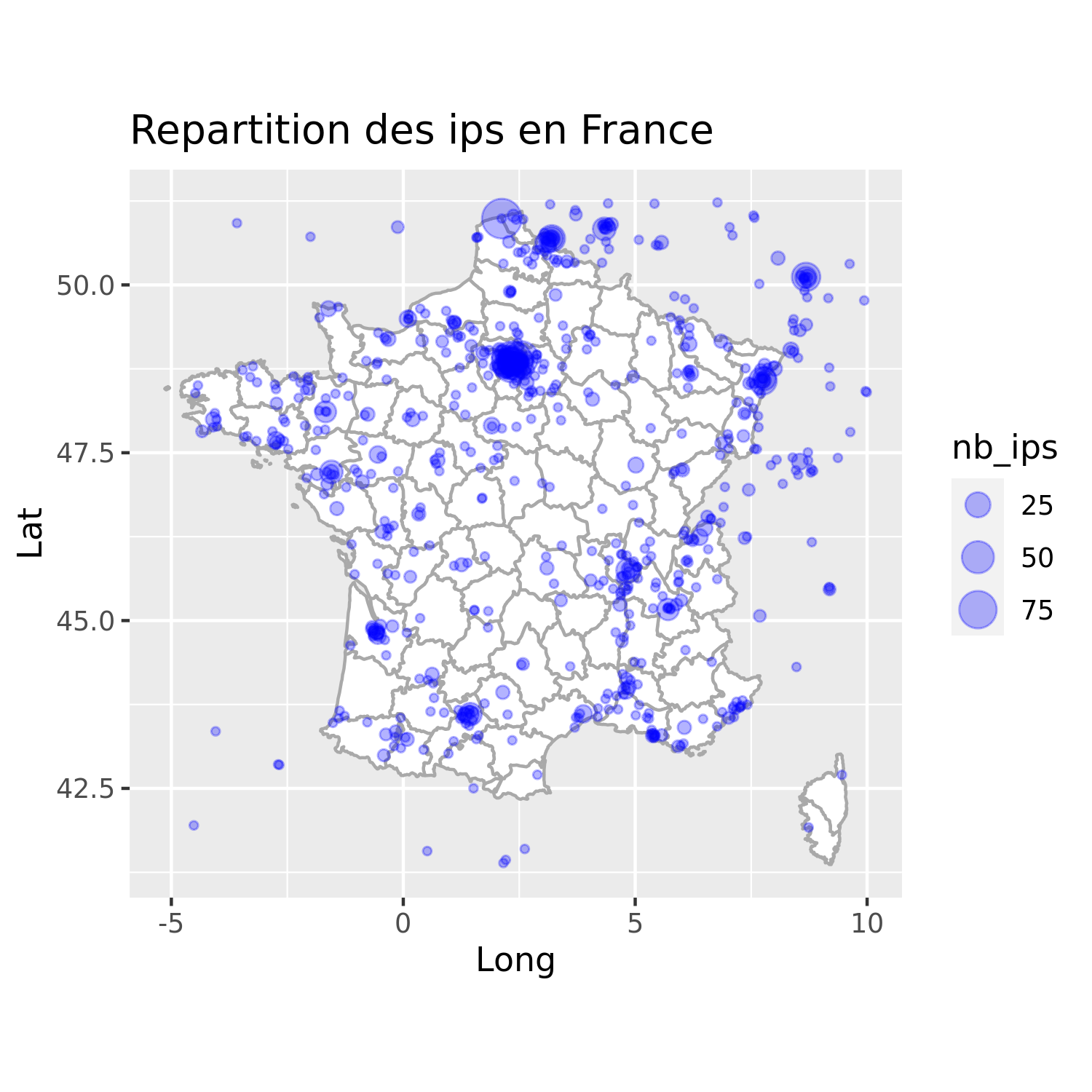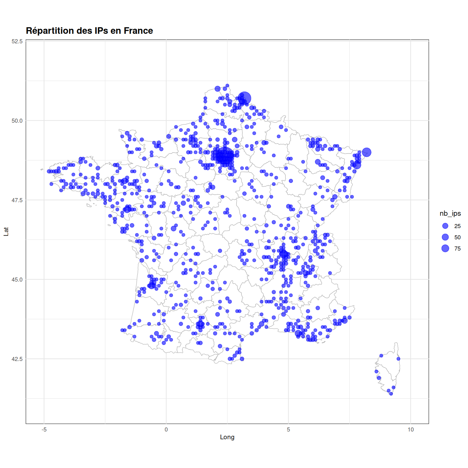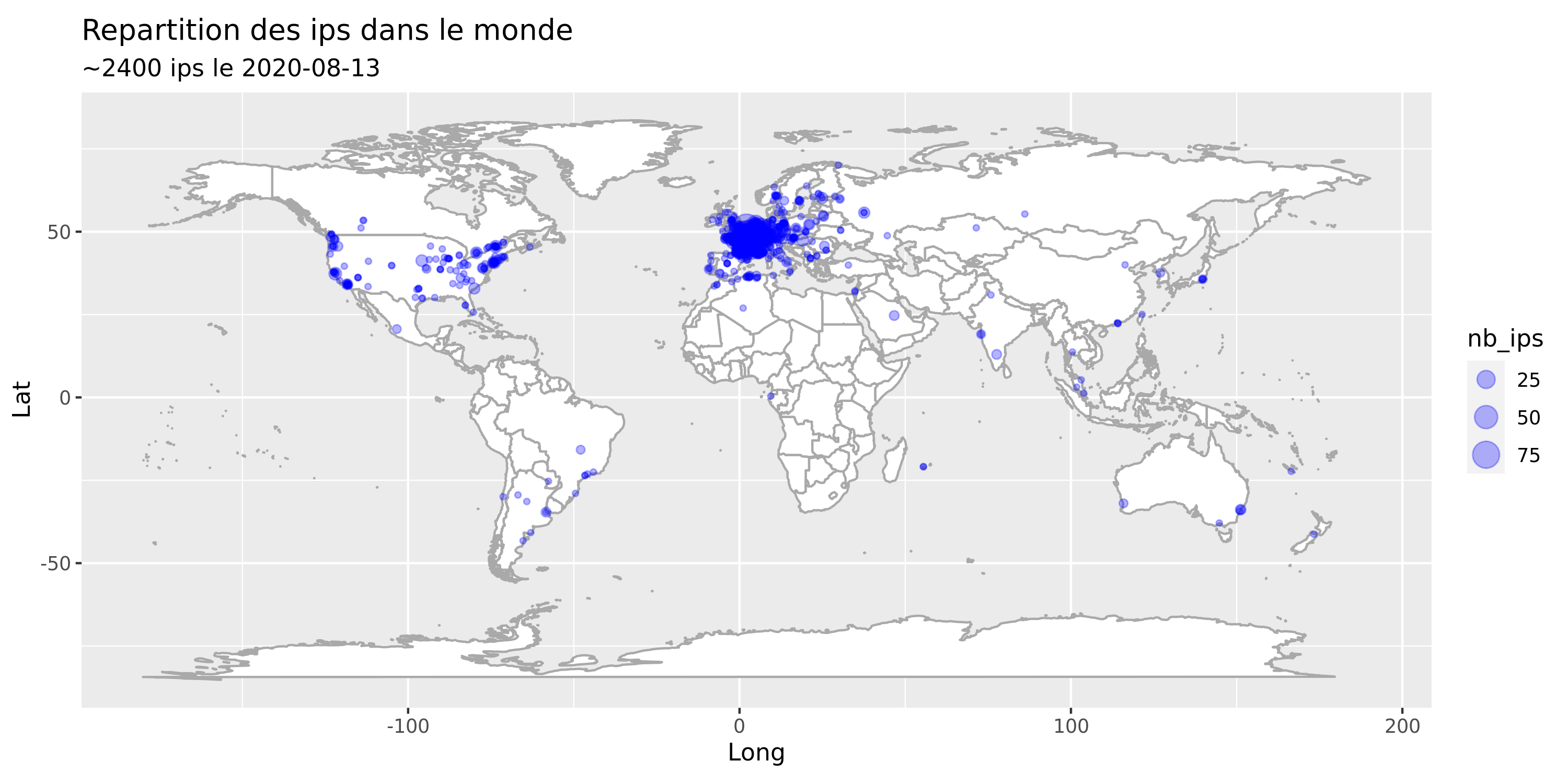 Environ 26% des IPs n’ont pas pu être géolocalisées (limite du service gratuit)