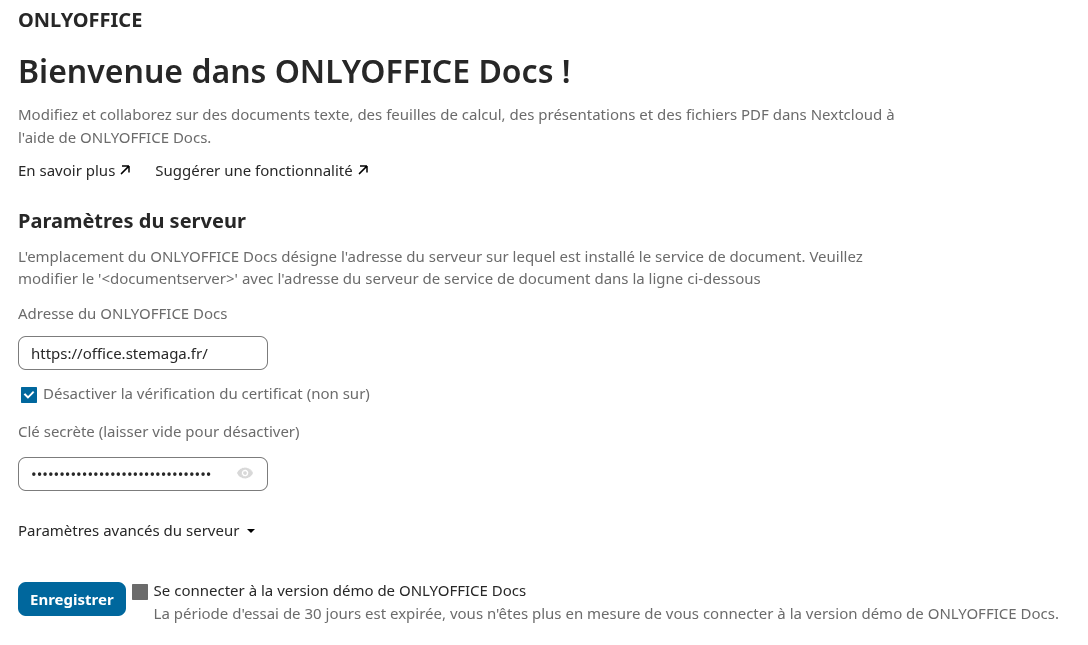 Je rencontre de temps à autre (au gré des mise à jour) des soucis pour le fonctionnement de onlyoffice sur nextcloud. A savoir que le fichier est téléchargé par le navigateur à la place d’afficher onlyoffice.