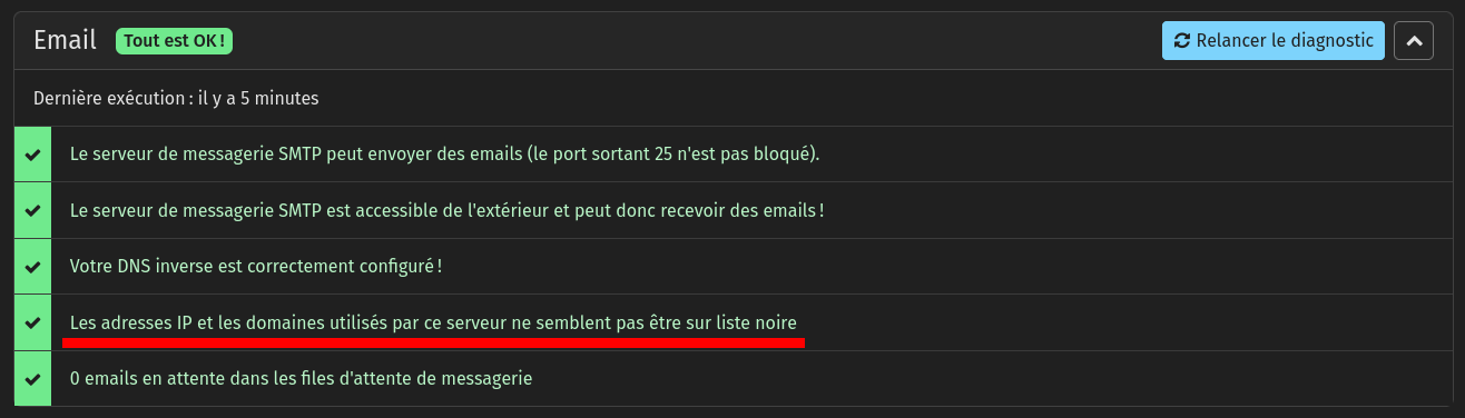 Good morning, I installed the new Yunohost 12.1.31 update and ended up on the spam list again. Until now everything had been quiet. When I run the diagnosis in Yunohost, I get this suggestion — do I have to do that?