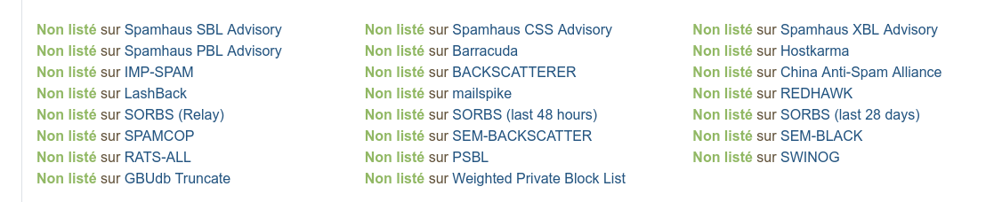 So, we’re hopeful that version 12.1.30 should more exhaustively address the issues, in particular for incorrectly rejecting incoming emails. The fix mainly revolves around tweaking dnsmasq’s configuration to route spamhaus queries directly to spamhaus servers (instead of via an open resolver) - in particular this should also apply to queries from postfix and not just the diagnosis.