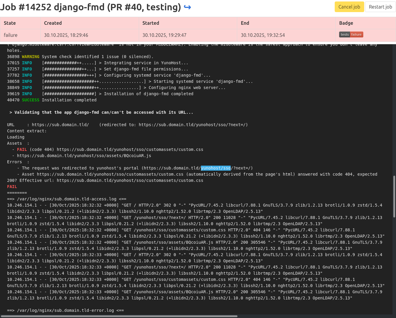 But the “return to app” values like /yunohost/sso/?r=aHR0cHM6Ly90ZXN0c2VydmVyL2FwcF9wYXRoL2xvZ2luLXJlcXVpcmVkLw%3D%3D depends on install location. So they can’t hardcoded into tests.toml