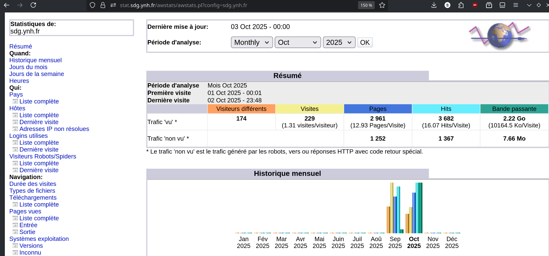- URL depuis la tuile (erreur 404) : https://stat.sdg.ynh.fr/awstats