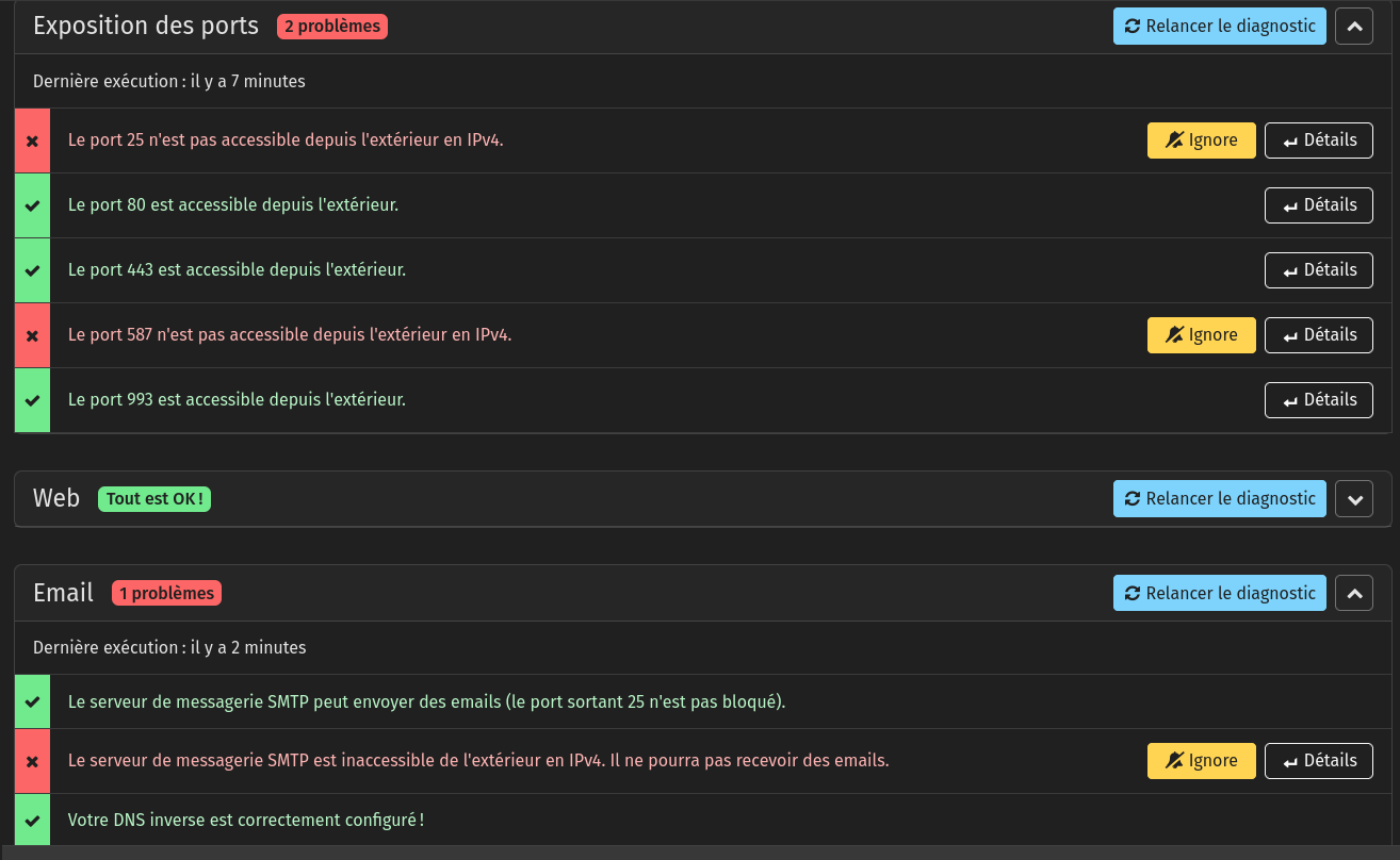 [ERROR] Le serveur de messagerie SMTP est inaccessible de l'extérieur en IPv6. Il ne pourra pas recevoir des emails.