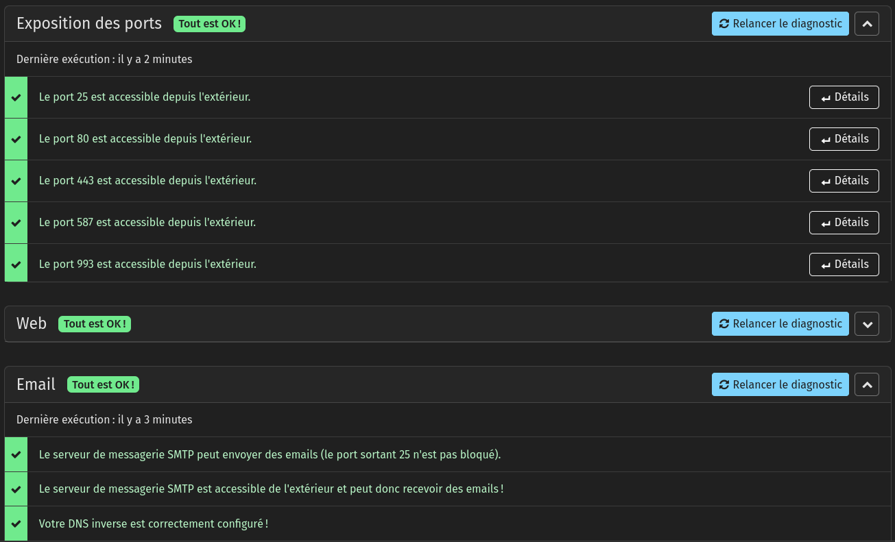 - Rendre ce port accessible est nécessaire pour les fonctionnalités de type email (service postfix)