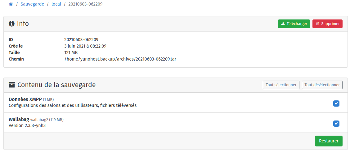 Chemin /home/yunohost.backup/archives/20210529-144235.tar