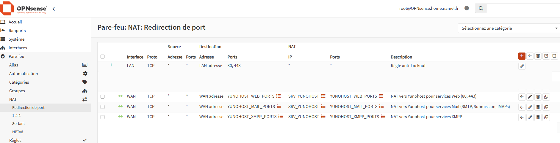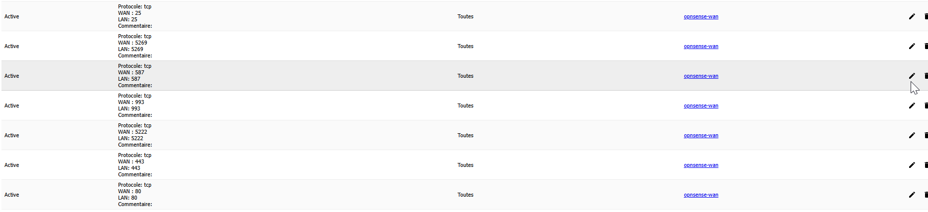 Toutes les redirections doivent pointer vers l’IP WAN OPNsense