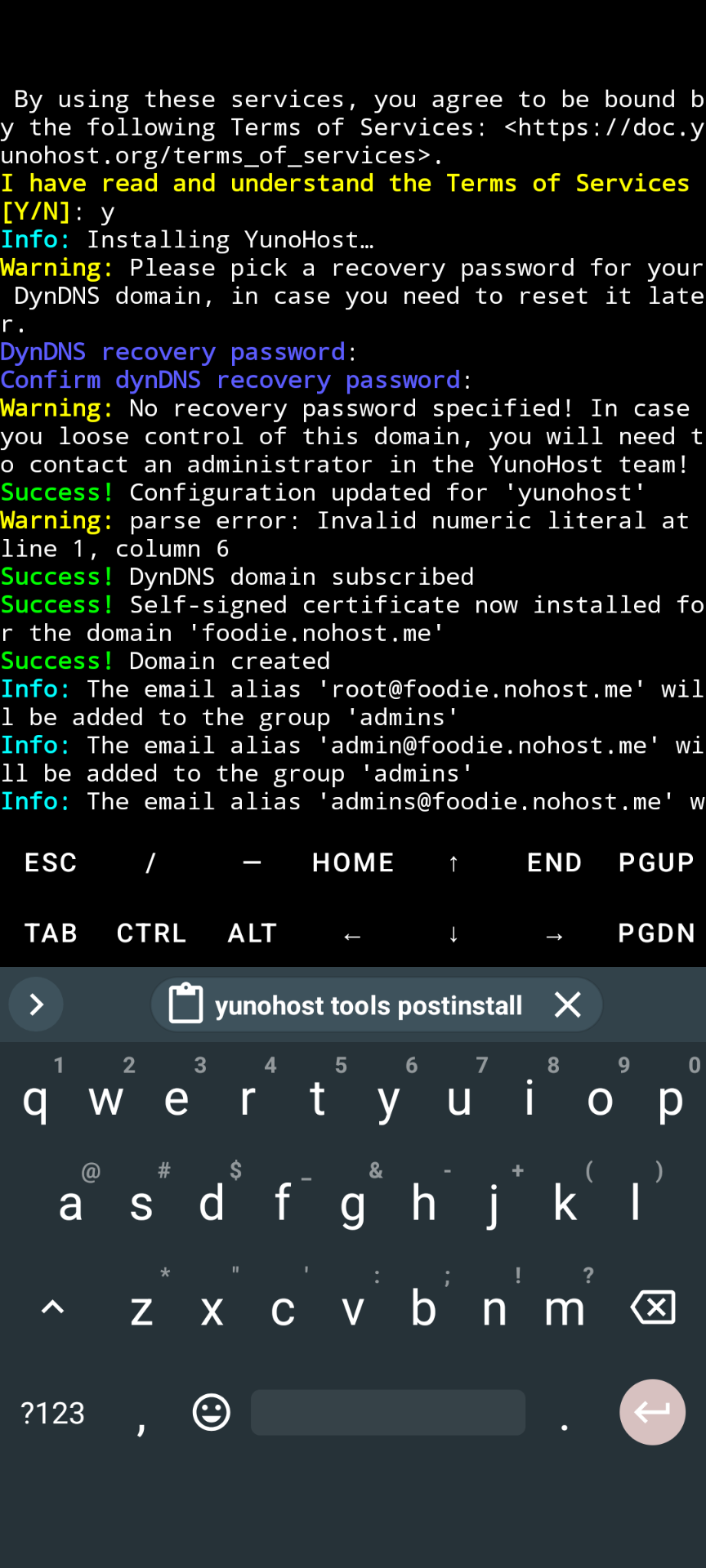 However I CAN log in with the admin user to the installed yunohost instance in the browser with the IP of the VPS.