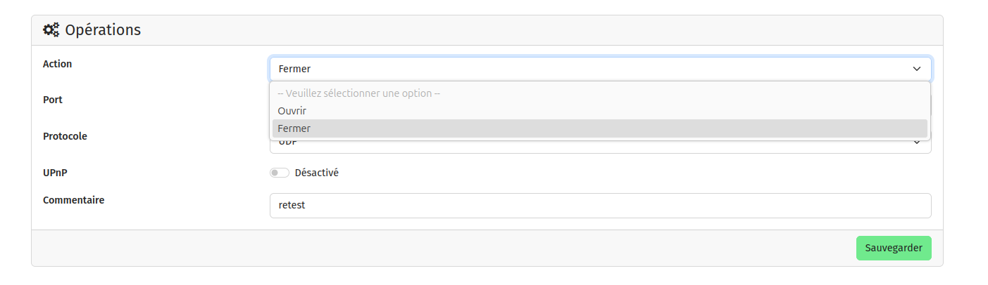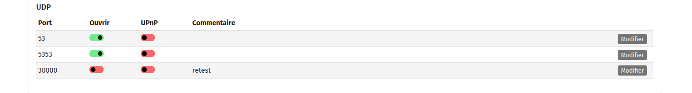 Pour des tests réseaux j’ai ouvert le port 30000 en udp depuis l’interface d’administration. Une fois terminé, je l’ai fermé. Cependant le port apparait toujours et je ne peux pas revenir à l’état d’avant où le port n’apparaissait pas.