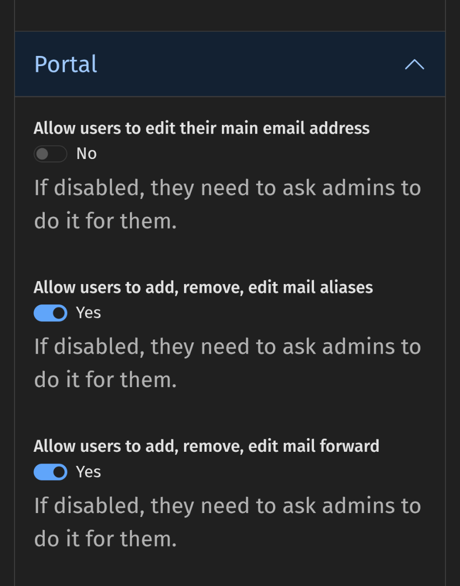 Users are unable to edit email aliases even though the setting is set to allow them to do it. I have confirmed in the web admin and in the CLI.