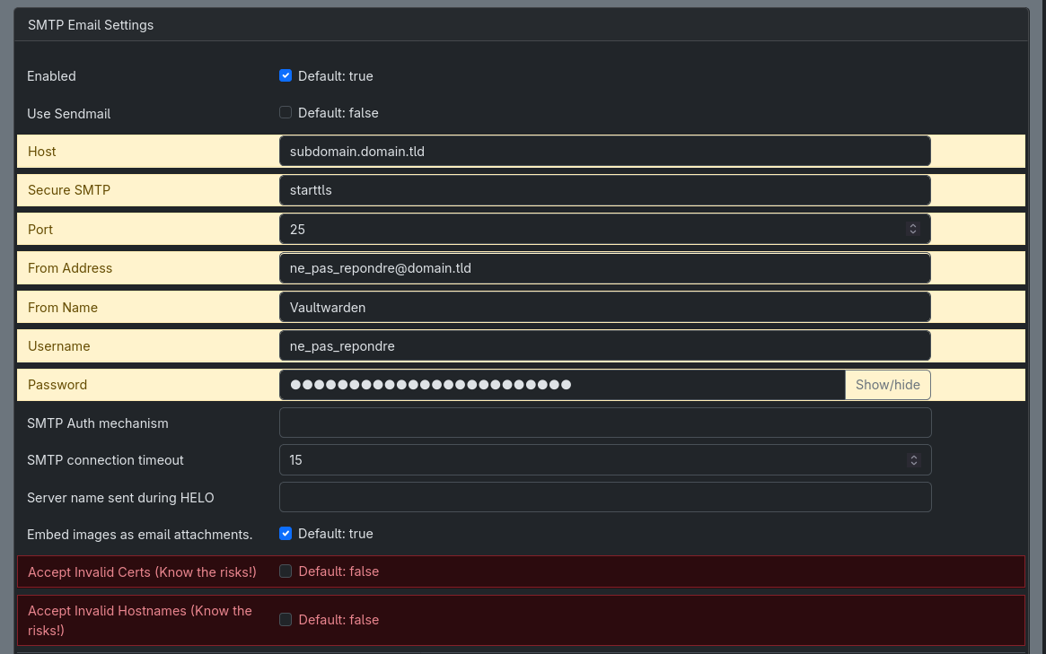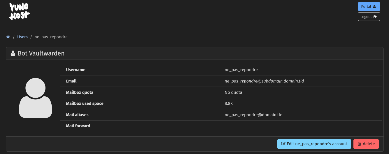 Actually, I tried to open a new user on YunoHost panel but it says: “User already exists”. Also when I tried with my information on Vaultwarden admin I got the same error.
