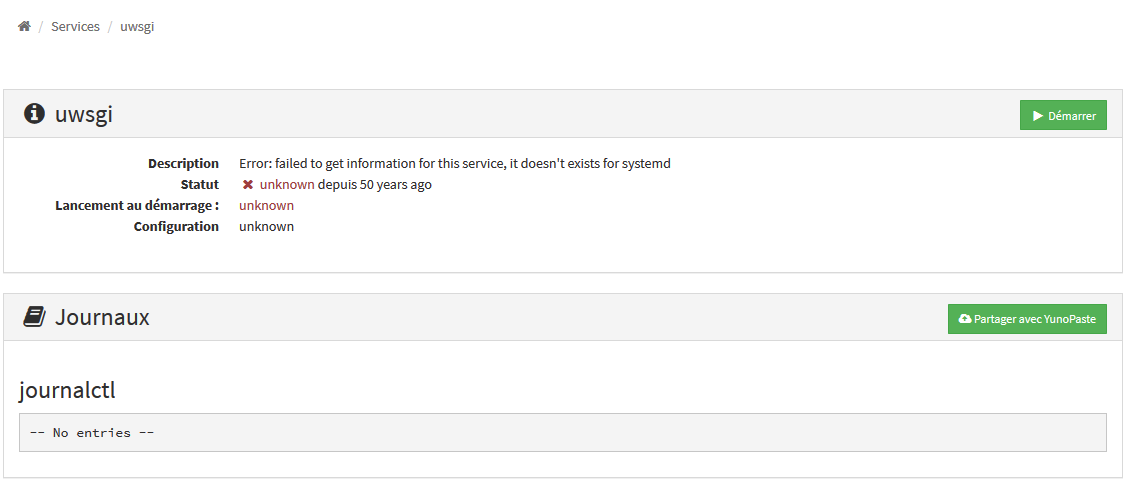 Hmokay … mais du coup si tu systemctl restart php7.3-fpm (ou bien meme chose depuis la webadmin) ca raconte quoi de + dans les logs ?